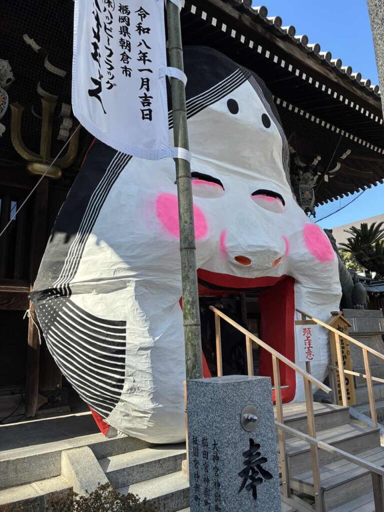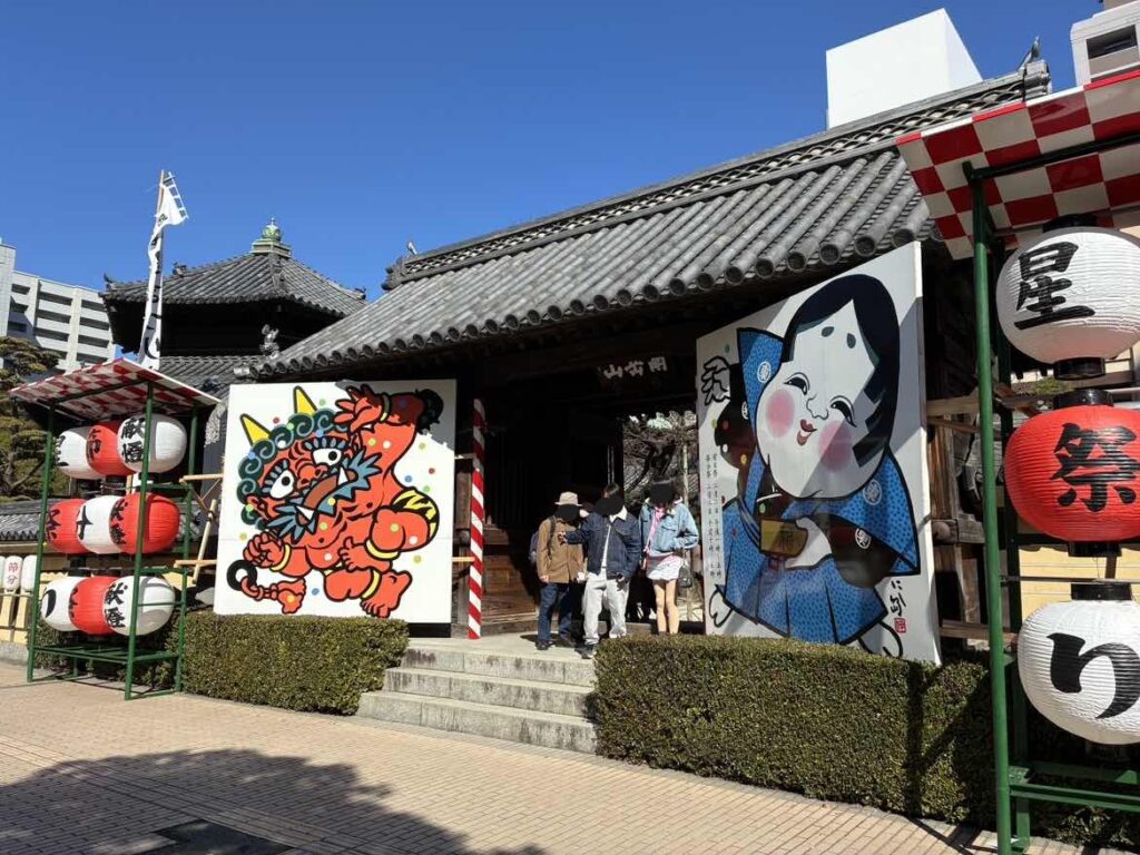 櫛田神社(くしだじんじゃ)や東長寺(とうちょうじ)には、多くの人が豆(まめ)まき行事(ぎょうじ)に参加(さんか)していました